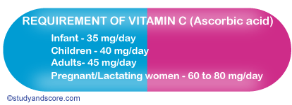 Recommended amount of vitamin C for different age groups is as follows: